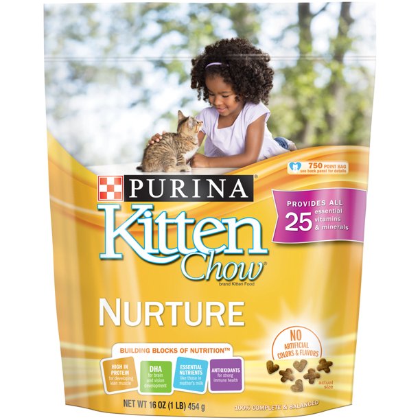 Purina Kitten Chow Dry Kitten Food Nurture Muscle Brain Development 16 Oz Pouch Walmart Com